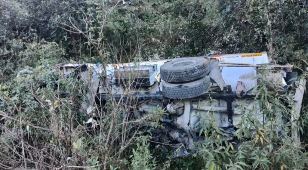 देहरादून। शनिवार की सुबह केम्पटी फॉल के पास पेट्रोल और डीजल से भरा एक ट्रक पेट्रोल पंप के ठीक सामने अचानक गहरी खाई में गिर गया। खाई में गिरते ही ट्रक के टैंक फट गए और डीजल-पेट्रोल का तीव्र रिसाव शुरू हो गया। जिससे इलाके में आग लगने का खतरा गहरा गया।