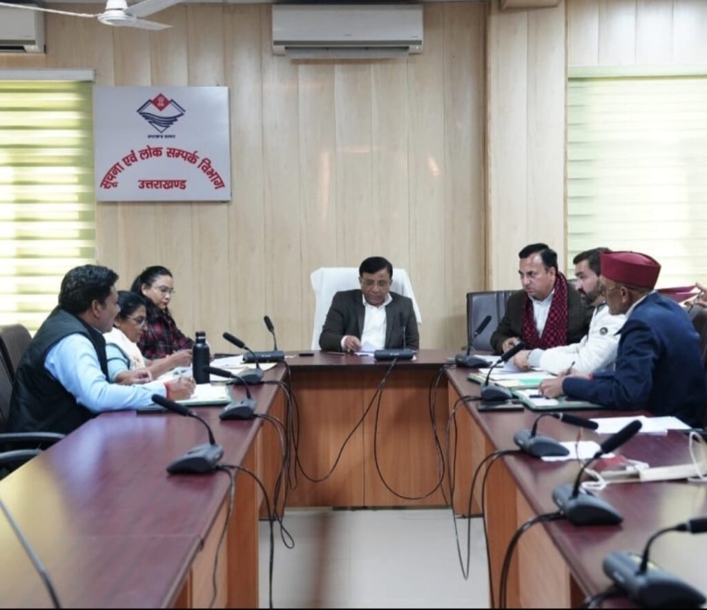 बैठक में सूचना विभाग के संयुक्त निदेशक के.एस.चौहान, नितिन उपाध्याय, वरिष्ठ वित्त अधिकारी श्रीमती शशि सिंह एवं समितियों के सदस्यगण लक्ष्मण सिंह नेगी, गिरीश तिवारी, अमित शर्मा, श्रीमती शशि शर्मा उपस्थित रहे।