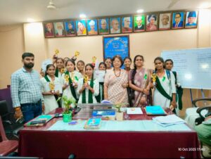 *-दुर्गा टीम की श्रुति, शिवानी एवं मुस्कान की रंगोली प्रथम स्थान पर चयनित* *-रंगोली प्रतियोगिता का मूल उद्देश्य छात्राओं में...