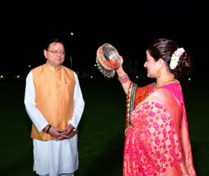 देहरादून। *मुख्यमंत्री श्री पुष्कर सिंह धामी ने धर्मपत्नी श्रीमती गीता धामी के साथ मुख्यमंत्री आवास में मनाया करवा चौथ उत्सव*...