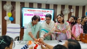गया जी। गौतम बुद्ध महिला कॉलेज में कॉलेज के आईक्यूएसी के तत्वावधान में प्रधानाचार्या डॉ. सीमा पटेल के निर्देशन तथा मार्गदर्शन में सत्र 2025 से 2029 के लिए विभिन्न विभागों में स्नातक कक्षाओं में नवनामांकित सेमेस्टर वन की छात्राओं के लिए एक दिवसीय स्टूडेंट इंडक्शन प्रोग्राम (छात्रा उन्मुखीकरण कार्यक्रम) का आयोजन किया गया। कार्यक्रम का शुभारंभ प्रधानाचार्या डॉ. सीमा पटेल एवं मंचासीन प्रोफेसरों ने दीप प्रज्ज्वलन करके किया। तत्पश्चात कॉलेज की अंग्रेजी विभागाध्यक्ष डॉ कुमारी रश्मि प्रियदर्शनी के निर्देशन में छात्रा अन्या, हर्षिता, निधि एवं तान्या ने महाविद्यालय कुलगीत एवं स्वागत गीत की सुमधुर प्रस्तुति दी। कार्यक्रम का समन्यवन कर रहीं अर्थशास्त्र विभाग की असिस्टेंट प्रोफेसर डॉ. वीणा कुमारी जायसवाल ने स्टूडेंट इन्डक्शन प्रोग्राम की रूपरेखा एवं उद्देश्यों पर प्रकाश डाला।
