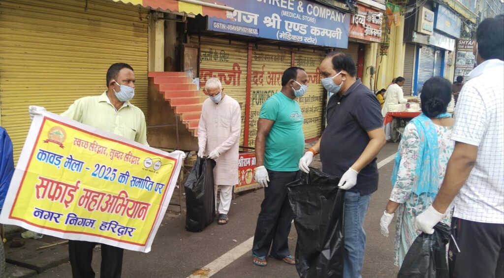 हरिद्वार 26 जुलाई। जिलाधिकारी मयूर दीक्षित तथा उपाध्यक्ष हरिद्वार रुड़की विकास प्राधिकरण अंशुल सिंह के आह्वान पर आज हरिद्वार में कांवड़ मेले से उपजे टनों मीट्रिक टन कूड़े-कचरे के निस्तारण के लिए प्रशासन द्वारा मेगा ड्राई क्लीन अभियान आयोजित किया गया।