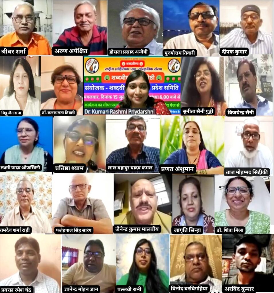 गयाजी। राष्ट्रीय साहित्यिक एवं सांस्कृतिक संस्था शब्दवीणा की महाराष्ट्र प्रदेश समिति के संयोजन में आयोजित मासिक काव्यगोष्ठी में देश के विभिन्न प्रदेशों से जाने-माने कवियों ने मन मोह लेने वाली रचनाएँ पढ़ीं। कार्यक्रम का शुभारंभ शब्दवीणा महाराष्ट्र प्रदेश संरक्षक प्रो. डॉ. कनक लता तिवारी द्वारा प्रस्तुत सरस्वती वंदना से हुआ। शब्दवीणा की संस्थापक एवं राष्ट्रीय अध्यक्ष प्रो. डॉ. रश्मि प्रियदर्शनी ने आमंंत्रित रचनाकारों का संक्षिप्त परिचय देते हुए कार्यक्रम में स्वागत किया। आशीष प्रदाता के रूप में शब्दवीणा के राष्ट्रीय परामर्शदाता पुरुषोत्तम तिवारी ने पावन हुगली नदी के घाट से हार्दिक शुभकामनाएं दीं। मुख्य अतिथि के रूप में आमंंत्रित वाराणसी के वरिष्ठ कवि हौसला प्रसाद अन्वेषी ने कार्यक्रम की सराहना करते हुए कहा कि आज ‘शब्दवीणा’ संस्था एक अत्यंत समृद्ध साहित्यिक संस्था मंच बन गयी है और यह राष्ट्रीय स्तर पर ख्याति अर्जित कर रही है। विशिष्ट अतिथि कवयित्री बिट्टू जैन सना ने भी बधाइयाँ प्रेषित कीं।