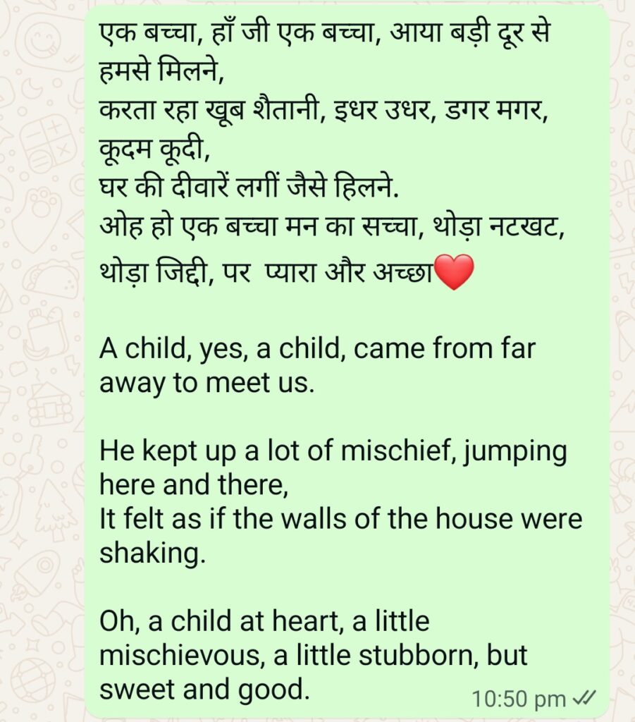 एक बच्चा, हाँ जी एक बच्चा, आया बड़ी दूर से हमसे मिलने,