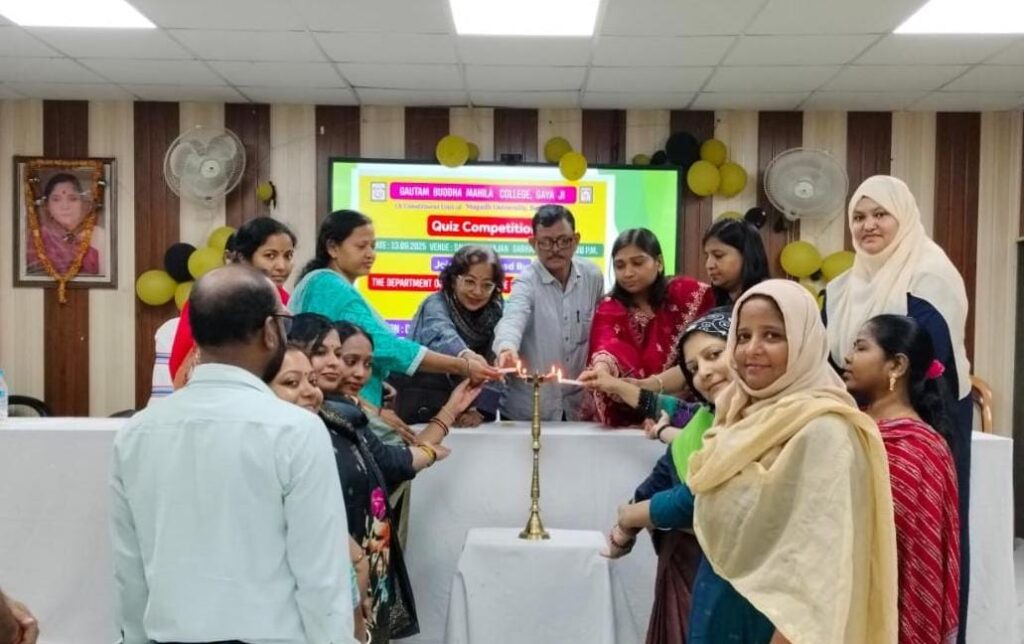 गया जी। गौतम बुद्ध महिला कॉलेज में प्रधानाचार्य डॉ सीमा पटेल के संरक्षण में एवं अर्थशास्त्र विभाग की सीनियर असिस्टेंट प्रोफेसर डॉ नगमा शादाब एवं अंग्रेजी विभाग की सीनियर असिस्टेंट प्रोफेसर्स डॉ कुमारी रश्मि प्रियदर्शनी व डॉ पूजा के निर्देशन में अर्थशास्त्र विभाग एवं अंग्रेजी विभाग द्वारा संयुक्त रूप से एक अत्यंत रोमांचक क्विज प्रतियोगिता आयोजित की गयी। प्रतियोगिता का शुभारंभ प्रधानाचार्या डॉ पटेल एवं मंचासीन प्रोफेसरों ने संयुक्त रूप से दीप प्रज्ज्वलित करके किया। छात्राओं को चार समूहों “गंगा”, “यमुना”, “सरस्वती” एवं “निरंजना” में बांट दिया गया, जिसमें से प्रत्येक समूह में अंग्रेजी विभाग एवं अर्थशास्त्र विभाग की छात्राएँ समान रुप से शामिल थीं। क्विज में इतिहास, दर्शनशास्त्र एवं अन्य विभागों की छात्राओं ने भी भाग लिया। गंगा समूह में लवली, रिया, प्रियंका व गुलनाज़, यमुना समूह में रितिका, सर्वांगी, मनीषा व रवीना, सरस्वती समूह में श्रुति, प्रतिमा, अंजली, रिया एवं निरंजना समूह में विनायिका, खुशी, प्रिंसी, व मुस्कान रहीं।