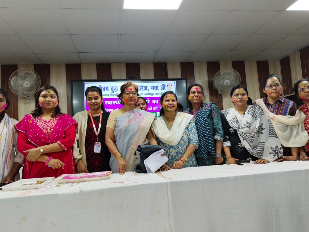 गया जी। गौतम बुद्ध महिला कॉलेज में राष्ट्रीय सेवा योजना इकाई द्वारा प्रधानाचार्या डॉ सीमा पटेल की देखरेख में एवं एनएसएस प्रोग्राम अॉफिसर डॉ कुमारी रश्मि प्रियदर्शनी के संयोजन में “रंग-रंगीली होली आई” रंगोत्सव का आयोजन हुआ। एनएसएस की ओर से यह एक होली जागरूकता कार्यक्रम था, जिसमें “सुरक्षा, स्वास्थ्य एवं एक दूसरे का सम्मान। होली में पर्यावरण और सामाजिक ज़िम्मेदारियों का भी रखें ध्यान” विषय पर वक्ताओं ने विचार रखे। स्वयंसेवकों एवं छात्राओं से स्वच्छ, सभ्य, मर्यादित व अनुशासित तरीकों को अपनाते हुए सुरक्षित होली मनाने का आग्रह किया गया। प्रधानाचार्या डॉ सीमा पटेल ने रासायनिक रंगों के स्थान पर प्राकृतिक गुलाल का प्रयोग करने की बात कही। कहा कि होली में अभद्र भाषा के प्रयोग से बचें। अनुशासन में रहकर होली मनाएँ। वहीं डॉ रश्मि ने बसंतोत्सव होली को प्रेम, सौहार्द्र एवं एकता का पर्व बताया। उन्होंने होली के नाम पर पेय जल को बर्बाद न करने की सलाह दी। कहा कि हम सूखी होली खेलकर भी पर्व मना सकते हैं। जल संरक्षण कर सकते हैं।