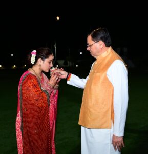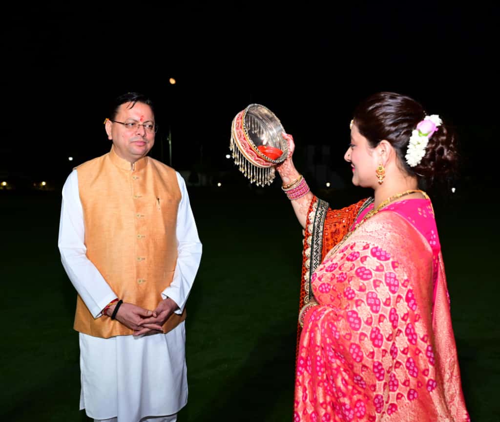 देहरादून। *मुख्यमंत्री श्री पुष्कर सिंह धामी ने धर्मपत्नी श्रीमती गीता धामी के साथ मुख्यमंत्री आवास में मनाया करवा चौथ उत्सव*