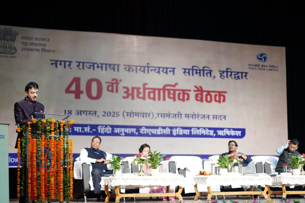 ऋषिकेश। अध्यक्ष एवं प्रबंध निदेशक टीएचडीसी इंडिया लिमिटेड आर.के. विश्नोई ने बताया कि नगर राजभाषा कार्यान्वयन समिति की 40वीं अर्धवार्षिक बैठक 18.08.2025 को टीएचडीसी इंडिया लिमिटेड, ऋषिकेश के रसमंजरी हॉल में आयोजित की गई। बैठक की अध्यक्षता नराकास, अध्यक्ष एवं टीएचडीसी के निदेशक (कार्मिक) शैलेन्द्र सिंह ने की। बैठक में समिति के सदस्य संस्थानों के प्रमुखों/प्रतिनिधियों एवं राजभाषा अधिकारियों ने बड़ी संख्या में प्रतिभागिता की। विदित ही है कि नराकास हरिद्वार देश की सबसे बड़ी नराकासों में से एक है जिसमें सदस्य संस्थानों की संख्या 69 है। इस समिति में रुड़की, हरिद्वार, ऋषिकेश एवं पर्वतीय क्षेत्र में स्थित केंद्र सरकार के संस्थान एवं कार्यालय सम्मिलित हैं। कार्यक्रम में सर्वप्रथम समिति के अध्यक्ष एवं टीएचडीसी के निदेशक (कार्मिक), शैलेन्द्र सिंह, अखिल भारतीय आयुर्विज्ञान संस्थान, ऋषिकेश की निदेशक, मीनू सिंह, एनआईएच रुड़की के निदेशक, डॉ वाई.आर.एस.राव, राजभाषा विभाग के उप निदेशक, छबिल मेहेर, टीएचडीसी के मुख्य महाप्रबंधक (मा.सं.एवं प्रशा.), डॉ अमर नाथ त्रिपाठी एवं विशिष्ट अतिथियों का स्वागत किया गया। कार्यक्रम का शुभारंभ दीप प्रज्ज्वलित कर किया गया। इस अवसर पर टीएचडीसी इंडिया लिमिटेड के टीईएस हाईस्कूल के विद्यार्थियों के द्वारा सरस्वती वंदना एवं स्वागत गान प्रस्तुत किया गया। सभी उपस्थित प्रतिभागियों ने करतल ध्वनि से इन विद्यार्थियों का उत्साहवर्धन किया।