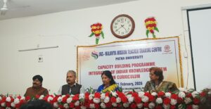 गया जी। गौतम बुद्ध महिला कॉलेज की प्रधानाचार्या डॉ सीमा पटेल ने यूजीसी के मालवीय मिशन शिक्षक प्रशिक्षण केंद्र (एमएमटीटीसी) के तत्वावधान में पटना विश्वविद्यालय के साइंस कॉलेज, पटना में “इंटीग्रेशन अॉफ इंडियन नॉलेज सिस्टम इन करिकुलम” विषय पर आयोजित छः-दिवसीय “कैपेसिटी बिल्डिंग प्रोग्राम” में बतौर अतिथि वक्ता भाग लिया। 16 से 21 फरवरी 2026 तक आयोजित होने वाले इस कार्यक्रम के चतुर्थ दिवस प्रधानाचार्या डॉ पटेल ने विश्वविद्यालय अनुदान आयोग, नई दिल्ली द्वारा भारतीय ज्ञान परम्परा में प्रशिक्षित मास्टर ट्रेनर के रूप में बिहार राज्य के विभिन्न विश्वविद्यालयों, जैसे मगध, वीकेएसयू, पाटलिपुत्रा, पटना, मुंगेर मिथिला आदि से आए साठ प्रतिभागी प्रशिक्षु शिक्षकों को पारम्परिक कृषि परम्परा और पारम्परिक वनस्पति विज्ञान में प्रशिक्षित किया।