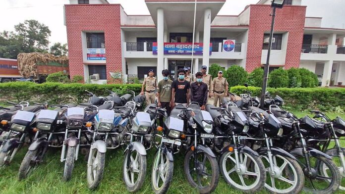 वाहन चोर गिरोह के बदमाश गिरफ्तार, चुरायी गयी 20 मोटरसाइकलें भी बरामद हुई