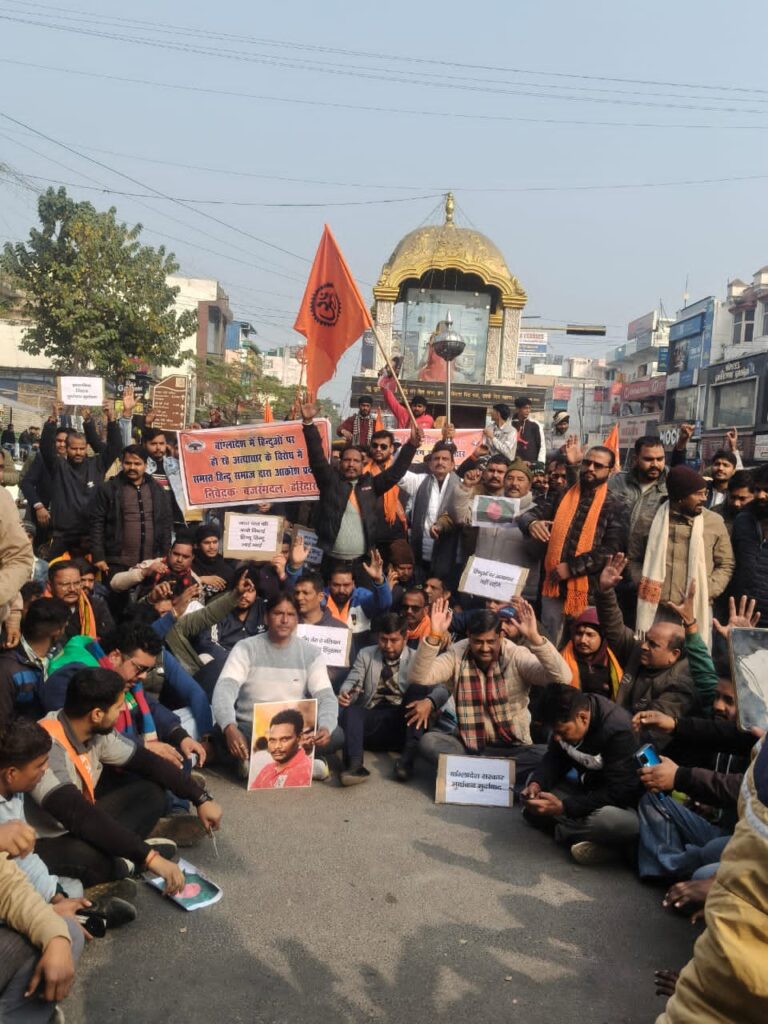 बांग्लादेश में हिंदुओं पर हो रही बर्बर जिहादी हिंसा के विरोध में विहिप–बजरंग दल का व्यापक आक्रोश प्रदर्शन
